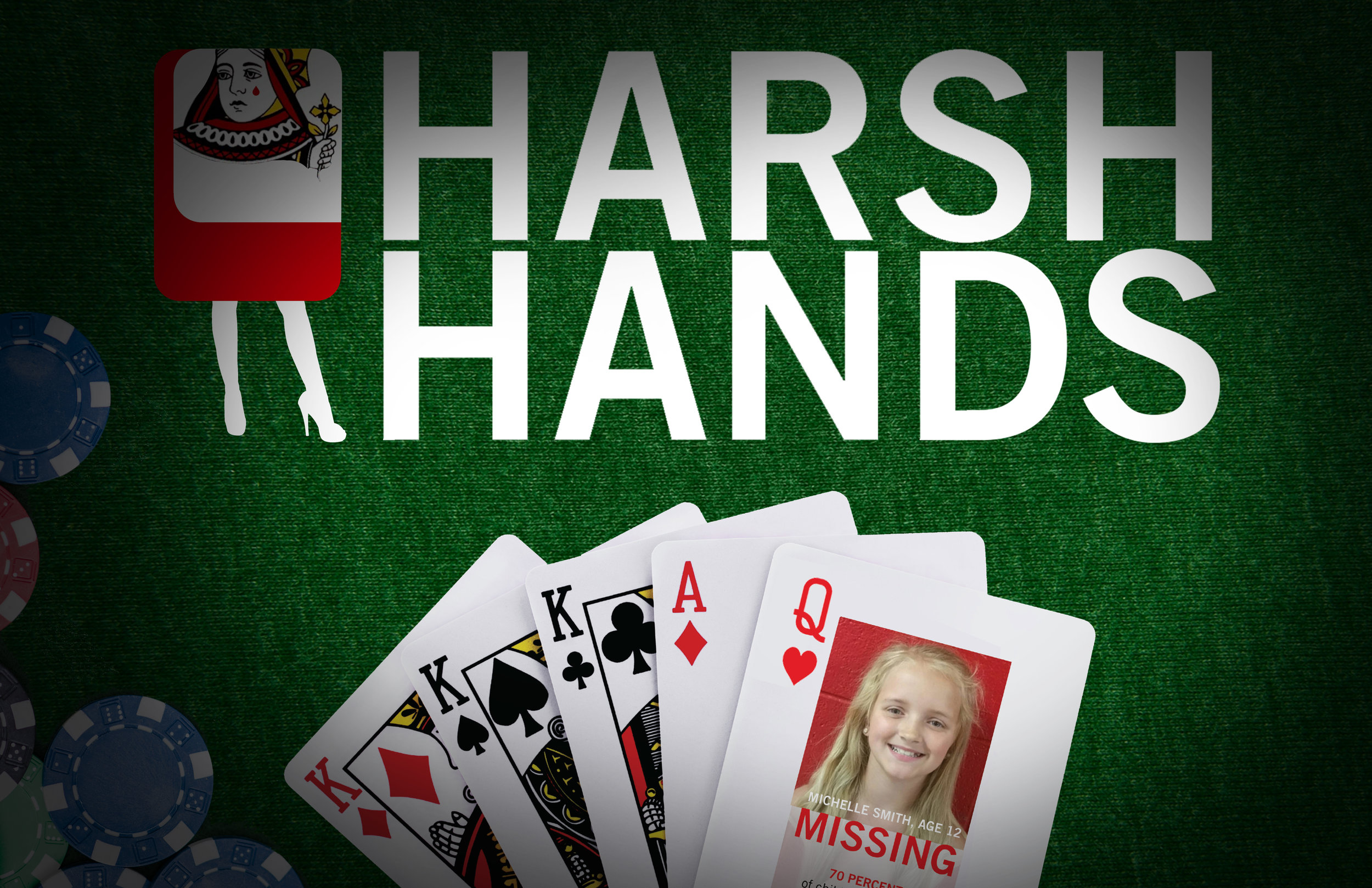 Harsh hands are playing cards that replace traditional faces and numbers in the suit of hearts with images and content about victims of sex trafficking. Harsh Hands is conducted through a collaboration with Caesar's Entertainment and Amnesty International - an unlikely partnership between one of the world's largest casino chains and a leading global human rights organization.